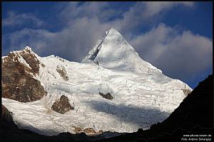 Nach dem Huayhuash-Trekking und der Besteigung des Vallunaraju (5686m) sind Sie bestens auf die Besteigung des technisch äußerst anspruchsvollen Nevado Alpamayo (5947m) vorbereitet. Durch das wildromantische Santa-Cruz-Tal und nach dreitägigem Aufstieg über den Gletscher erreichen wir am 4. Tag, nach Überwindung einer 400m hohen steilen Eiswand, den Gipfel. Das atemberaubende Panorama lohnt alle Mühen und Strapazen.